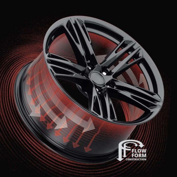 Flow forming is essentially a hybrid process of casting and forging wheels. When manufacturing with flow formed technology, wheel performance is improved by increasing wheel strength and reducing wheel weight.